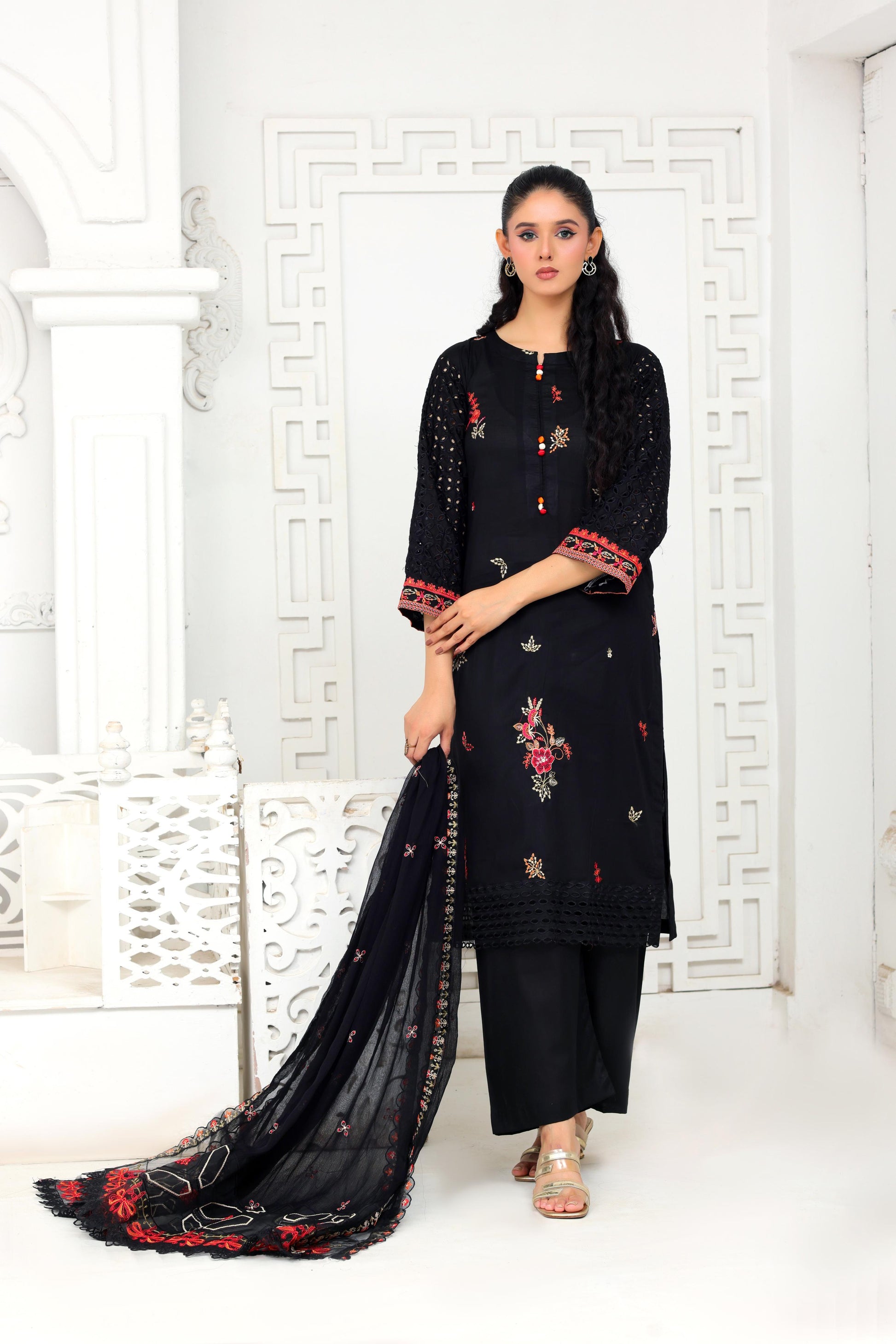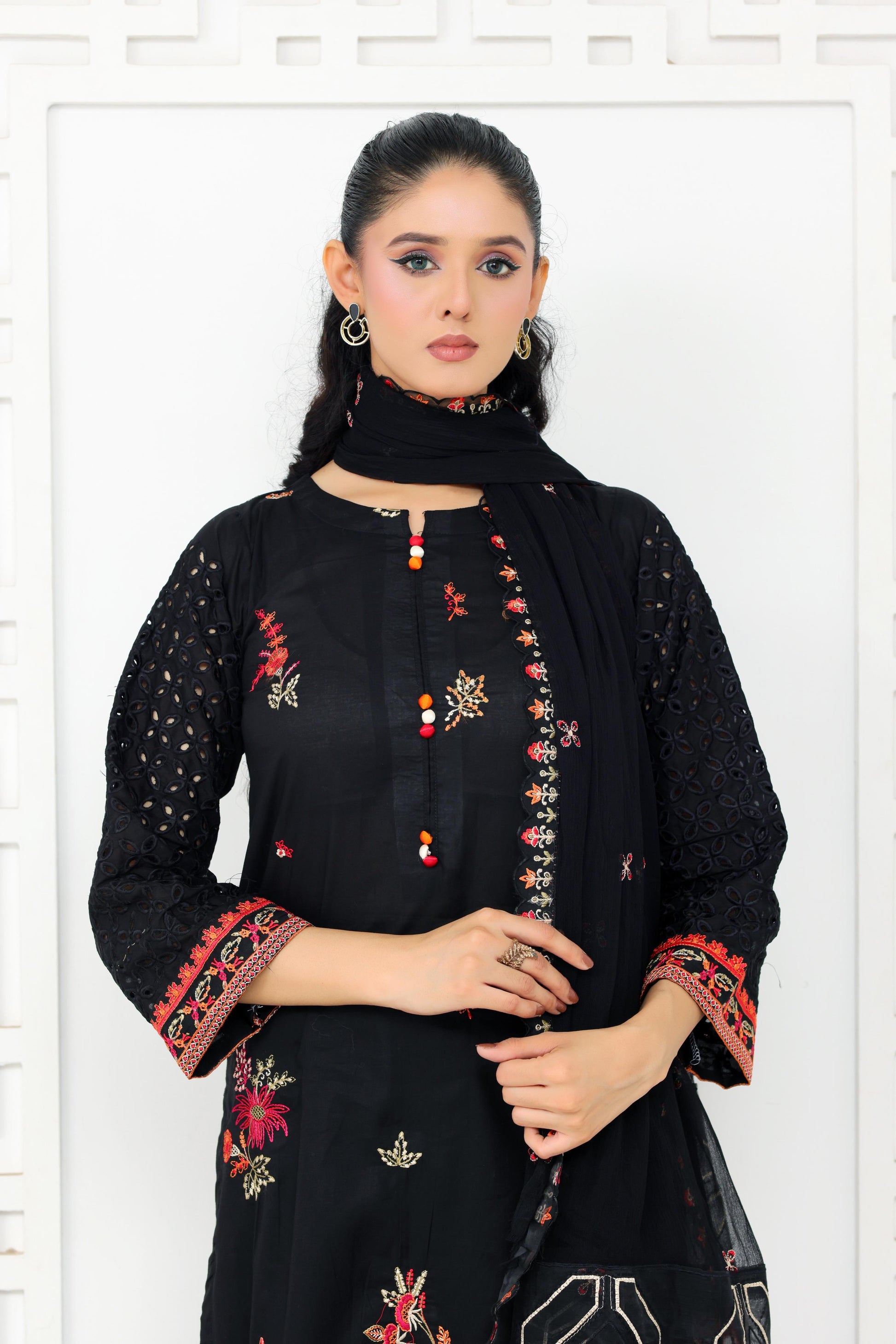 3-piece stitched suit (Shirt, Trousers, Dupatta)