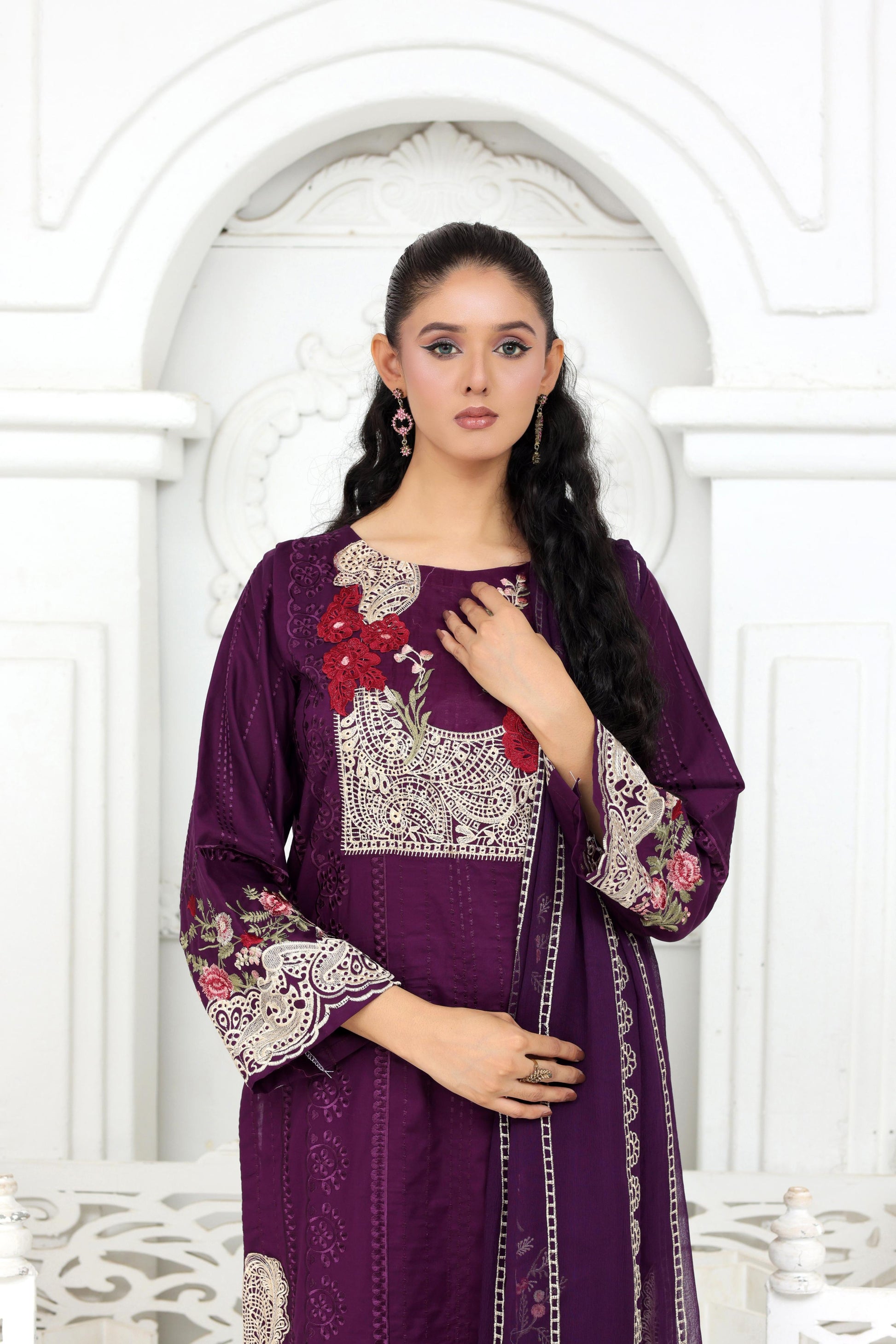 - 3-piece stitched suit (Shirt, Trousers, Dupatta)